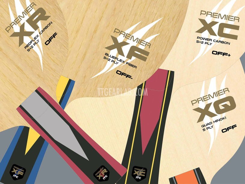 Premier XR was developed as a blade to represent ITC. It is a 5+2 ply inner fiber blade, but it is thicker than common inner-fiber blades at that time. Eche was selected as the top layer of this blade to realize a high-class appearance and high performance at the same time. The fiber of Premier XR is the same one as that for adidas Hypertouch and RadiX series. (adidas called it as RX-Carbon. And ITC called it as RedFlex Carbon) Thanks to hard top layer and thicker construction, Premier XR was much faster than standard inner-ALC blades, and was as fast as representative outer-fiber blades at that time.