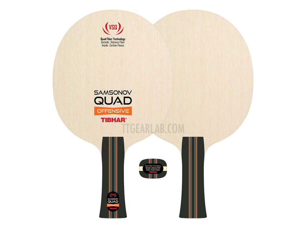 Samsonov Quad Offensive is a standard offensive blade. In its quad fiber construction, Volcanic fiber (= basalt fiber) is placed under the top layer, and carbon fleece is placed between the middle layer and the center layer. Top layer is Limba.