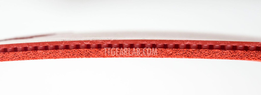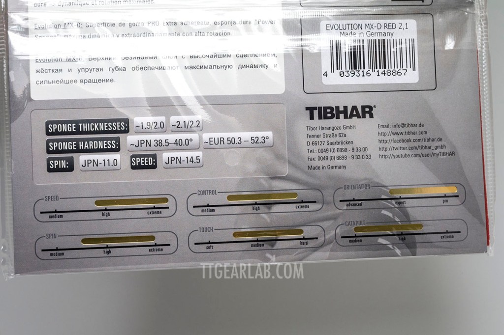 Tibhar ‘Evolution MX-D’ is the new top model of Tibhar rubber range. When compared to existing top models – ‘Evolution MX-P’ and ‘Evolution MX-S’, it can make faster ball with the same impact strength because the response curve has been adjusted for making high speed more easily. ‘D’ is the initial of ‘Dynamic’. This rubber has been developed to be used with ABS ball. The average density of sponge is 51.3 degree which is higher than the values of existing ‘Evolution MX-P’ and ‘Evolution MX-S’. However, although the sponge density is higher than 50 degree, player doesn’t feel that this rubber is very hard. That is thanks to the advanced tension effect of newly developed sponge.