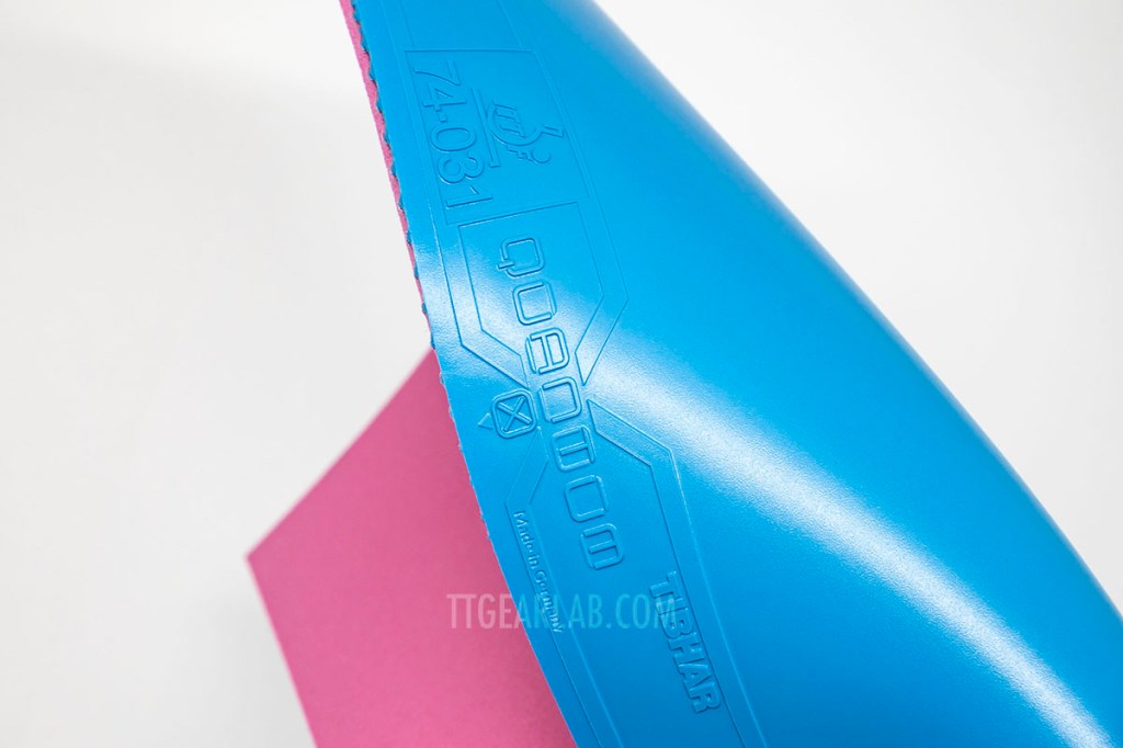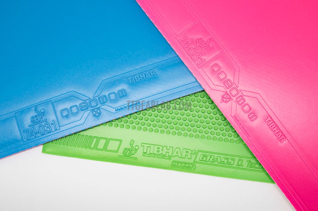 By the change of ITTF rule, various colors of top sheet can now be used instead of red. (The top sheet of the rubber on the other side should be black.) The first Tibhar rubber with the top sheet colors other than red and black is ‘Quantum X Pro’ which is one of the most important rubber in Tibhar rubber range. The new colors are pink and blue. ‘Quantum X Pro’ is more biased to speed, while ‘Evolution’ series is focused more on spin.
