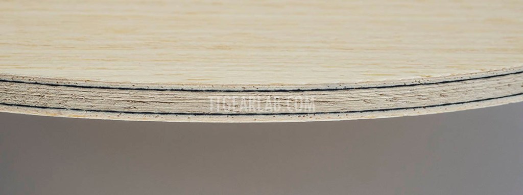Thickness is 6.2~6.3mm. Top layer is Koto. Woven carbon fiber is placed between middle layer and center layer.