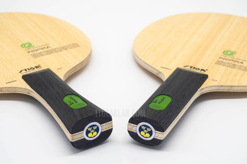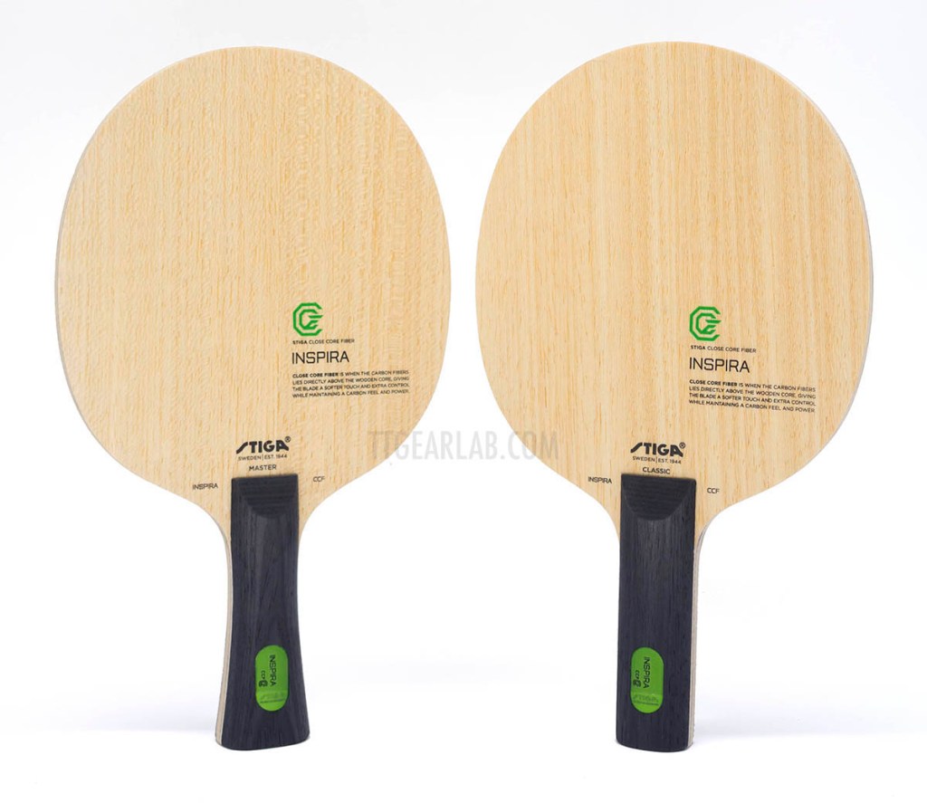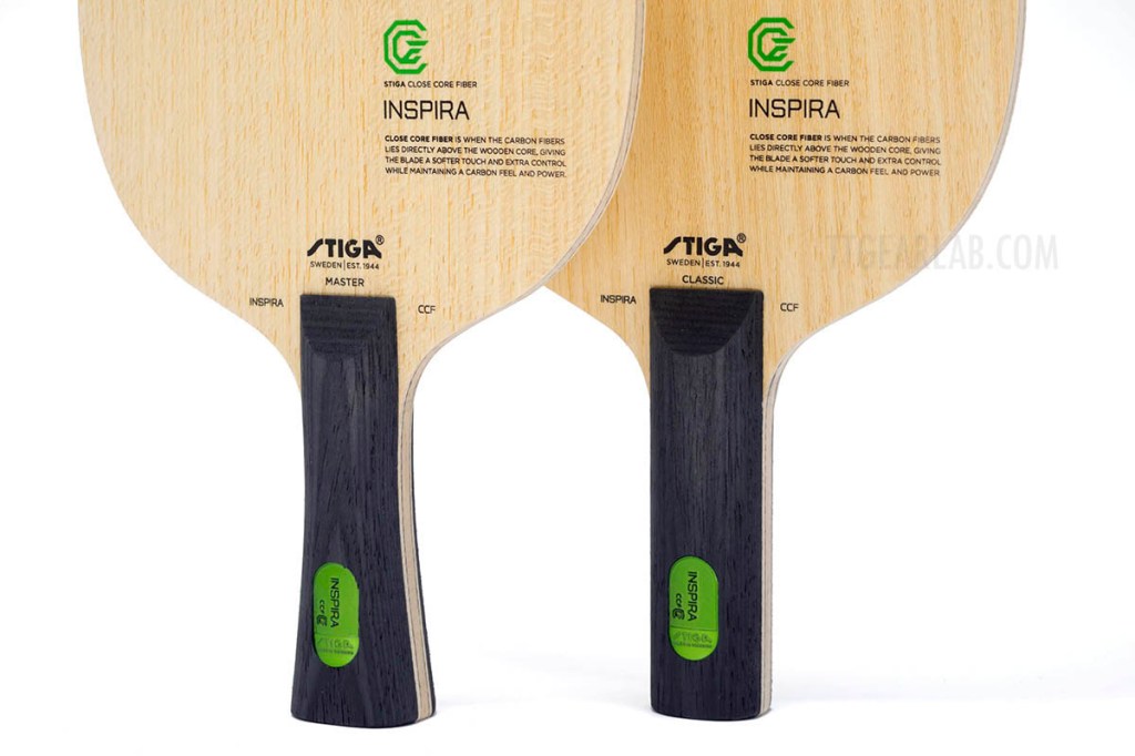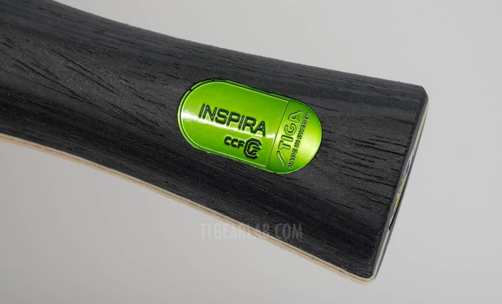 Stiga ‘Inspira CCF’ is the representative of inner-fiber blade in Stiga blade range before the launching of ‘Cybershape Carbon’. It is the thickest inner-fiber blade in Stiga blade range, and has woven carbon fiber in its construction. ‘CCF’ means ‘Close Core Fiber’ which is Stiga’s own expression for ‘inner fiber construction’. Although it is a blade with inner-fiber construction, ‘Inspira CCF’ is as fast as the most famous outer-fiber blade.