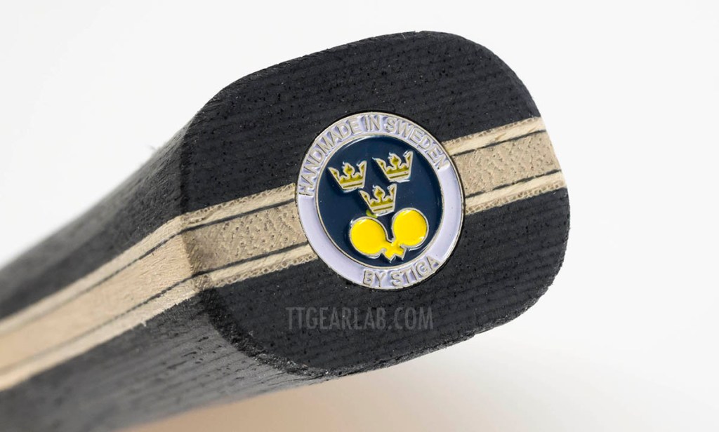 Current Stiga blades have aluminum logo plate instead of paper sticker at the end of handle. It makes very unique and attractive appearance.