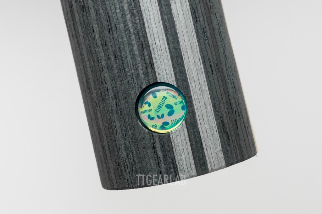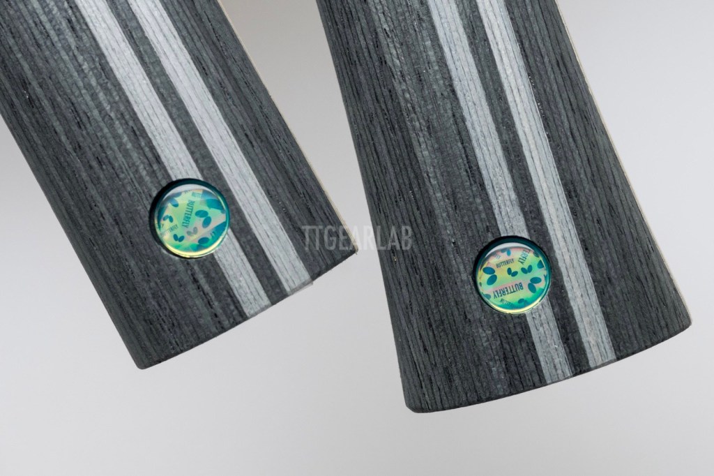 Like the other Butterfly blades, there is squared Aluminum plate with new Butterfly logo at the end of handle.
