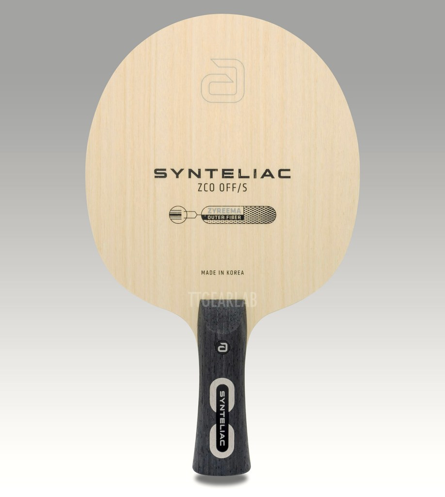 ‘Synteliac ZCO OFF/S’ is the outer-ZLC version of andro ‘Synteliac’ series. It provides top level of elasticity which is higher than the elasticity of most outer fiber blades. Further it doesn’t hold ball deeply when the player hits the ball very strongly. The combination of high primary elasticity and Mild Hold characteristic let the player easily make very fast ball with ‘Synteliac ZCO OFF/S’. The primary feeling of ‘Synteliac ZCO OFF/S’ is stiffer than the other outer fiber blades, but that feeling transmitted to the index finger isn’t that hard. Basically, ‘Synteliac’ series is the blade family for top players whose main technic is topspin. But, it is expected that ‘Synteliac ZCO OFF/S’ is also very good for smash. Therefore ‘Synteliac ZCO OFF/S’ is strongly recommended for the players who want to change the blade from ‘Hinoki-Carbon’ blades to the blade for topspin but don’t want to give up the ability of smash.