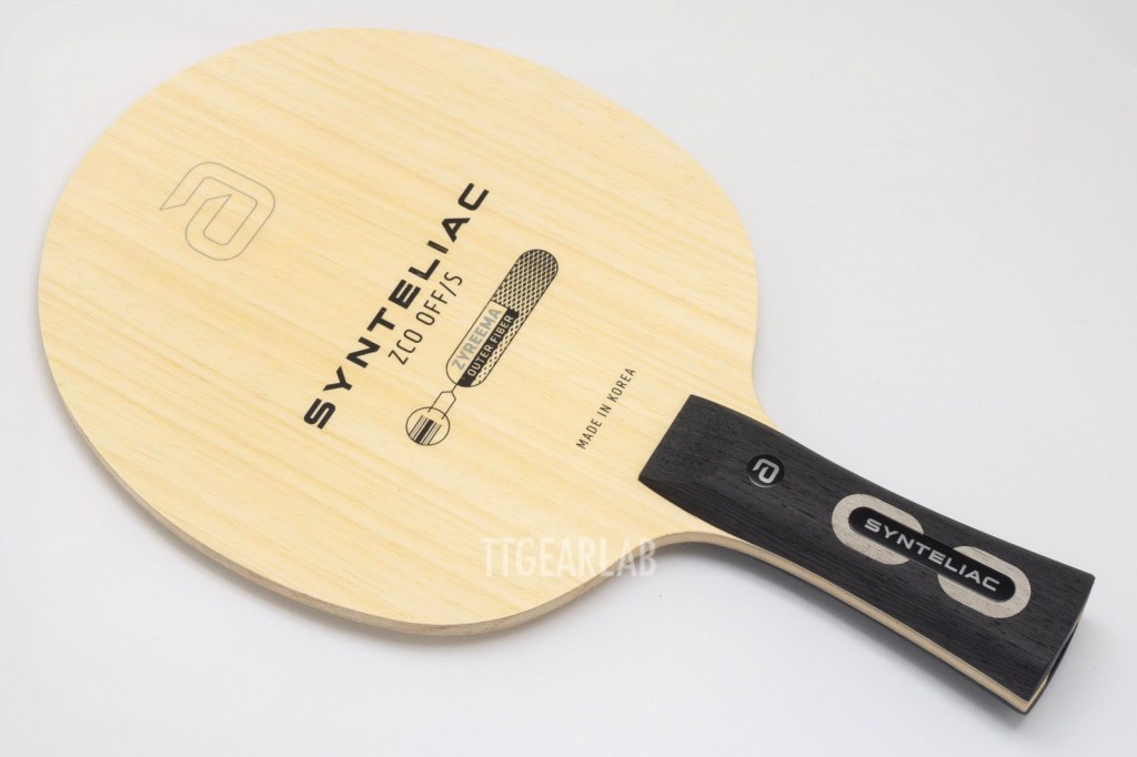 Above is the blade construction of ‘Synteliac ZCO OFF/S’. Zyreema Carbon (= ZLC) is placed directly under the top layer. The top layer is Koto, the middle layer is Ayous, and the center layer is Kiri. Overall thickness is measured as around 5.8mm.
