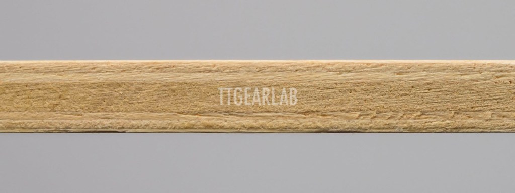Although ‘Fang Bo B’ is a 7-ply wood blade, its construction doesn’t follow the classic 7-ply wood construction of ‘Clipper’ type. The layer under its middle layer isn’t thick like that of classic construction. Instead it has additional thin layer between the middle layer and the center layer.