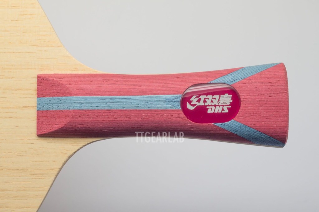 The shakehand handle of ‘Fang Bo B (7-ply)’ is available only in FL (flared) type. The width of FL (flared) handle is around 25mm (at head side) ~ 26mm (at bulge and at the middle of handle) ~ 35mm (at the end), and the thickness of FL handle is round 21.5mm (at thumb) ~ 25.5mm (at the end). The length is around 101mm. FL handle is quite slim at the middle of handle but not slim at the end. That is one of common characteristics of the FL handle of DHS.