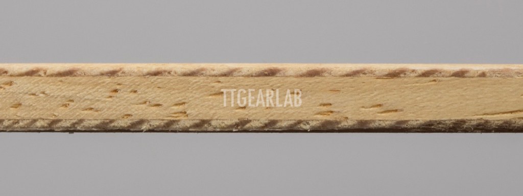 The plywood of ‘P500’ is based on traditional European offensive 5-ply construction. The top layer is Koto, the middle layer is Tanne, and the center layer is Ayous. Overall thickness is around 5.7mm.