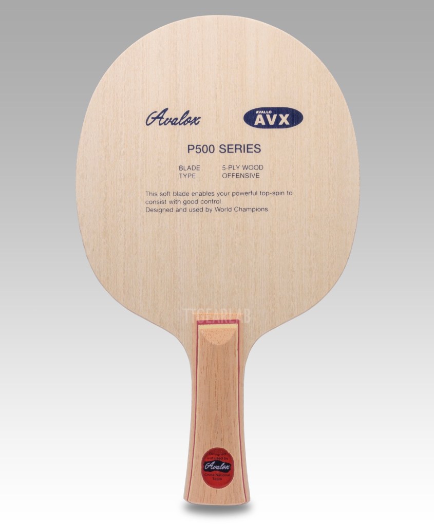 ‘Avalox’ is a brand of Swedish blades specially made for Chinese players. At the beginning of 1980’s, Chinese National Team was trying to adopt European topspin technics into the playing style of Chinse players. However, it was revealed that the domestic blades those were used by Chinse players were not suitable for topspin of European style. Therefore Chinese National Team wanted to supply European-made blades to its players, but it couldn’t work out smoothly because of the circumstances at that time. To solve that situation, in 1987, three persons from Sweden, Japan and Malaysia collaborated to make specially made blades for Chinese National Team, and established ‘Avallo Malaysia’ which is the company that deal with new products for Chinese National Team under the new brand – ‘Avalox’. At the beginning two models were developed – ‘P500’ for topspin with pimples-out rubber and ‘P700’ for fast attack with pimples-out rubber. Those blades have been used by many famous Chinese players such as Ma Wenge, Kong Linghui, Want Nan and Want Tao, and have achieved excellent result in international competitions until the late 1990s. And afterwards, Avalox added ‘BT (= Blue Thunder)’ series to its blade range. (Currently the official name of the brand isn’t ‘Avalox’ but ‘Avallo AVX’. That is because of the trademark dispute in Chinese market. To continue the business in Chinese market Avallo Malaysia had to change the brand from Avalox to Avallo AVX. Currently the name ‘Avalox’ is only used for the Swedish blades. And, new brand ‘Avallo AVX’ is applied for all models including Swedish blades. For that reason we can see two brands – ‘Avalox’ and ‘Avallo AVX’ those are printed on the head of ‘P500’.)