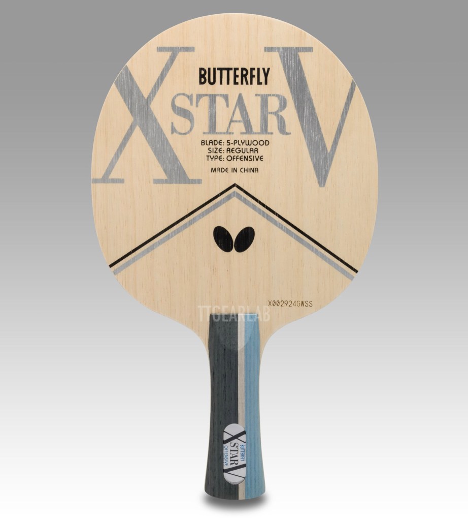 Butterfly ‘Xstar V’, released in March 2020, is a 5-ply wood blade with extremely good controllability for entry players. It is the successor of ‘Xstar’ which had been the entry blade in Butterfly range, but its blade construction is totally different from that of old ‘Xstar’. Butterfly recommends ‘Xstar V’ for the entry players who want to learn the basic skilles of table tennis technics, such as learning the correct swing method and the sense of making rotation of ball. ‘Xstar V’ can be directly compared with Stiga ‘Allround Classic’ and ‘Allround CR’ those are the representatives of entry blades.