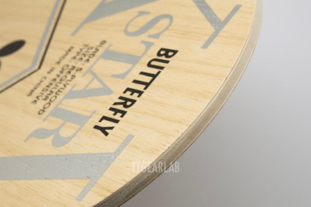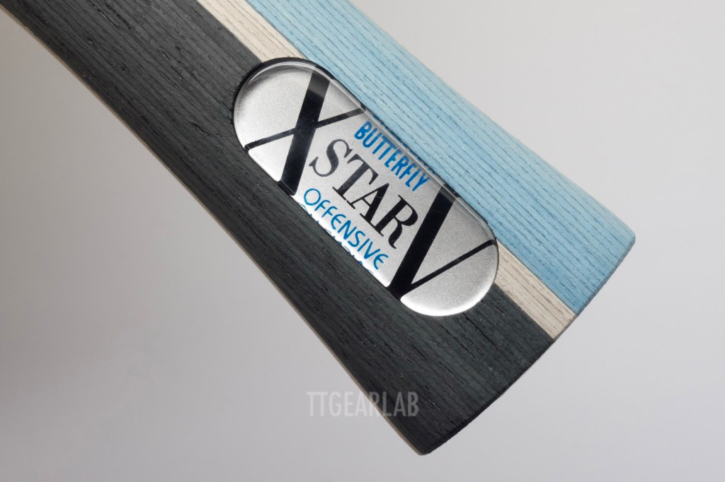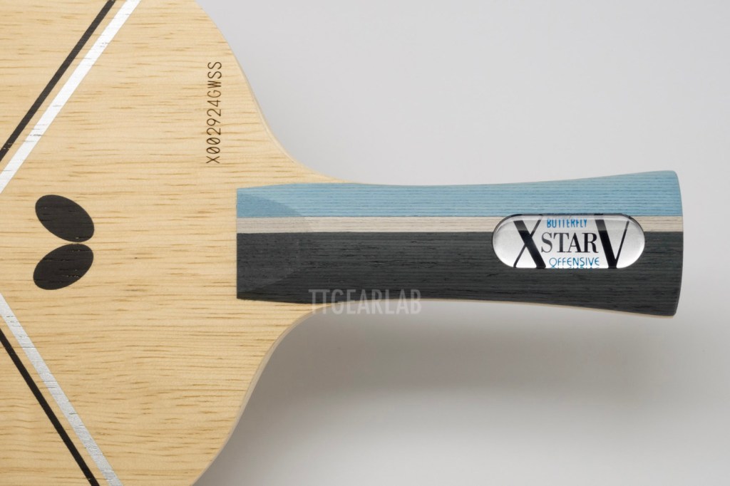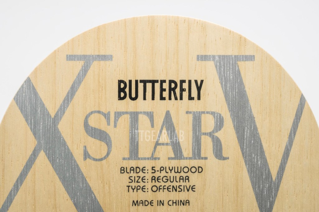The construction of ‘Xstar V’ is a 5-ply wood construction. The top layer is Limba. The middle layer and the center layer are Ayous. Overall thickness is around 5.6mm. This construction is a traditional European all-round construction which is very similar to the construction of Stiga ‘Allround Classic’.