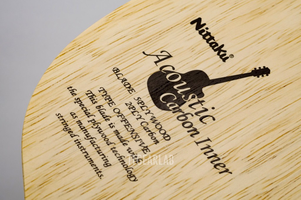 Nittaku ‘Acoustic Carbon Inner’ which was released in 1st May 2014 is the inner fiber version of ‘Acoustic Carbon’ which had been released in December 2013. ‘Acoustic Carbon’ is a fiber blade based on ‘Acoustic’ which is a 5-ply wood blade in the ‘Instrument’ series. And ‘Acoustic Carbon’ has become very popular as it became famous as the blade of Mima Ito. In particular, due to the change of table tennis ball, ‘Acoustic Carbon’ has been considered as a blade that can be recommended for the players who want to replace their pure wood blades in ‘Instrument’ series with more powerful blades. However, even though the ‘FE Carbon’ which is the artificial material for ‘Acoustic Carbon’ is thinner and softer than common woven carbon fibers, the outer fiber construction of ‘Acoustic Carbon’ makes its feeling somewhat far from what we can expect from ‘Instrument’ series. The common way for solving that is to change the construction to inner fiber construction, and the result is ‘Acoustic Carbon Inner’. ‘Acoustic Carbon Inner’ gives much softer and much more natural feeling when compared with its outer fiber version – ‘Acoustic Carbon’ – although the elasticity has been significantly reduced by the change of construction. ‘Acoustic Carbon’ is a very easy-to-use blade, and provides high performance when the skilled player makes a clear impact.