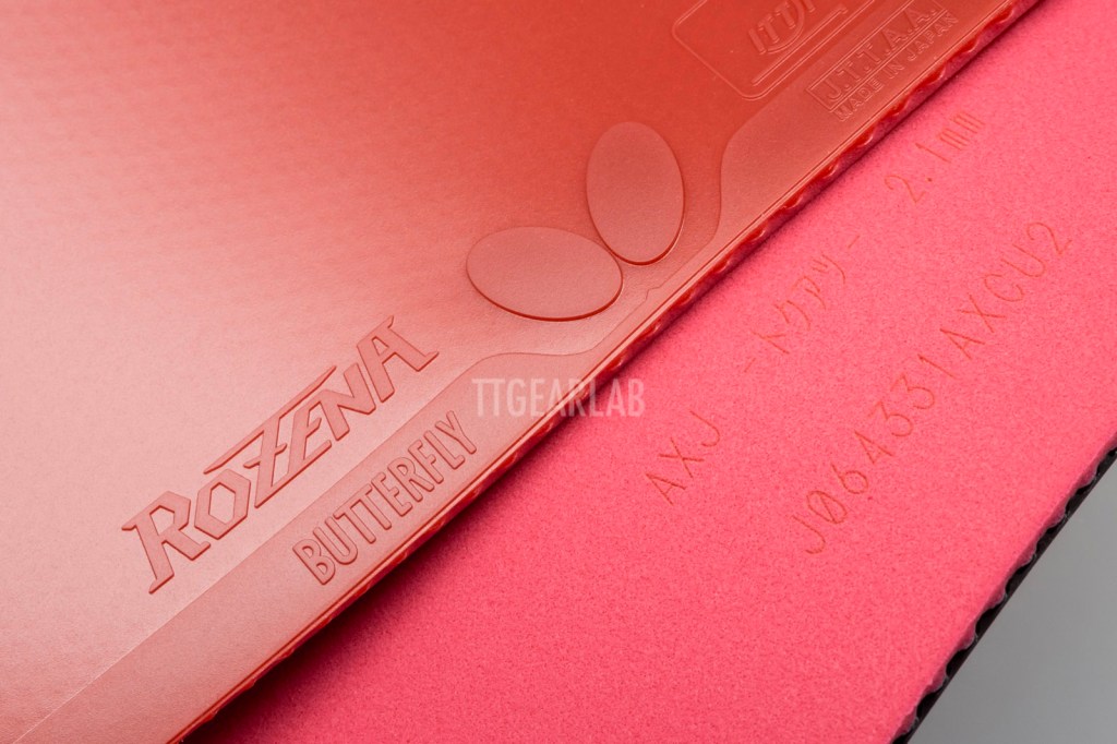 The characteristics of rubber is explained in four languages on the backside of packaging. Butterfly is explaining that ‘Rozena’ is a high-performance rubber that was developed in the pursuit of ‘Tolerance’. (By the way, the concept of ‘Tolerance’ was first introduced by adidas table tennis in 2011 by the suggestion of TTGearLab. TTGearLab suggested new concept that ‘control’ is divided into two indices – ‘precision’ and ‘tolerance’, and adidas accepted it and applied for the performance charts of adidas rubbers. All adidas rubbers are showing four indices – Speed, Spin, Precision and Tolerance.)
