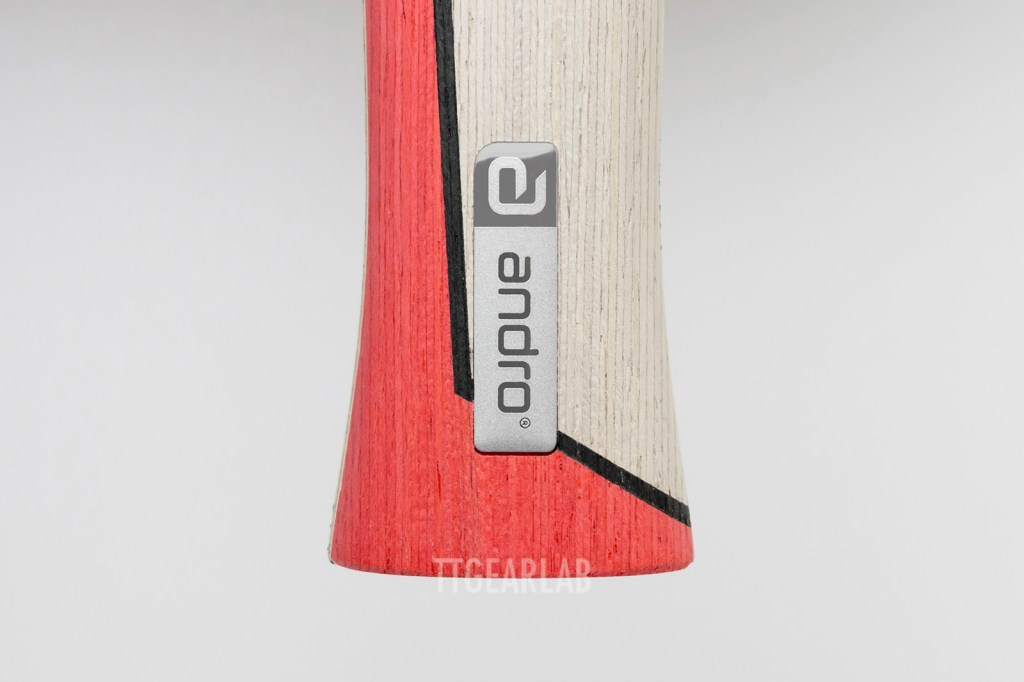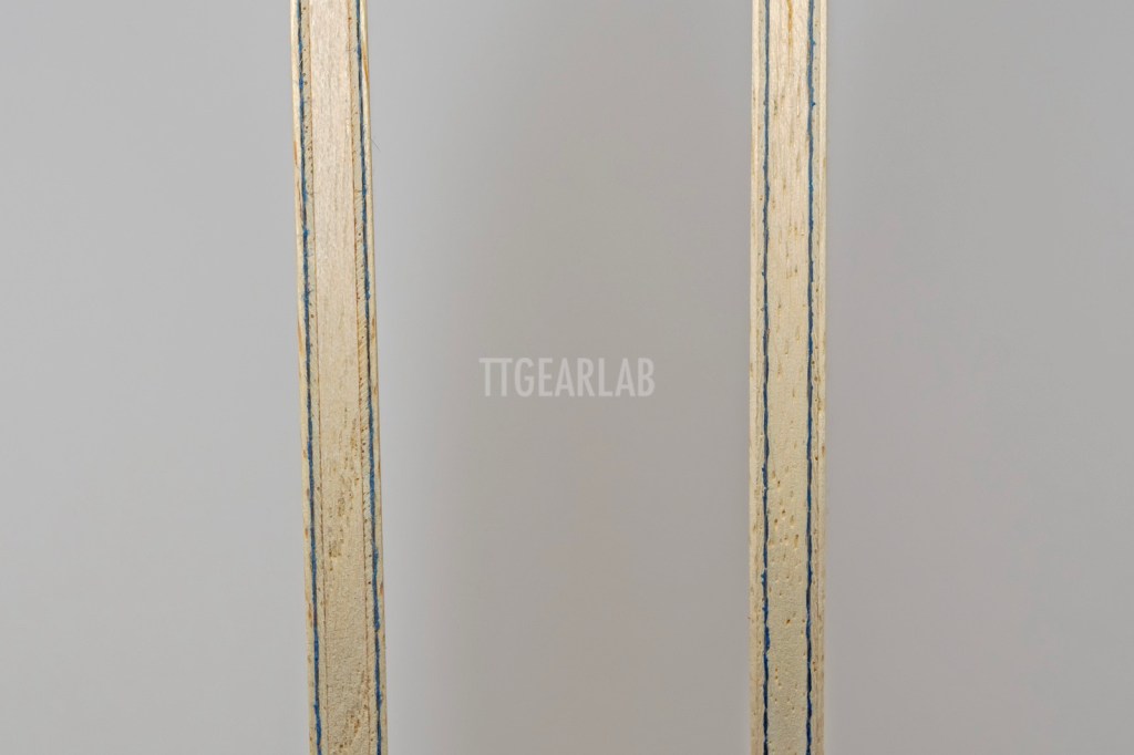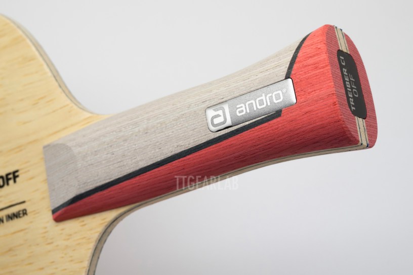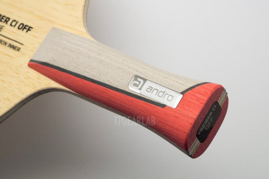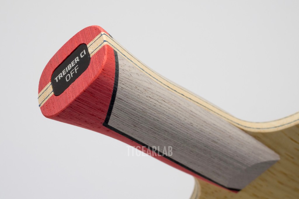 ‘Treiber CI’ is an inner-fiber blade as the character ‘I’ expresses. The top layer is Limba. The middle layer and the center layer are Ayous. Artificial material – KVL (Kevlar) carbon – is inserted between the middle layer and the center layer. Overall thickness is around 5.9mm. (It is thinner than the 6.1mm which is the official thickness written on andro catalog and home page.) KVL carbon is one of similar materials as ALC. Therefore, we can consider ‘Treiber CI’ as the andro blade that competes with inner ALC blades from other table tennis manufacturers.