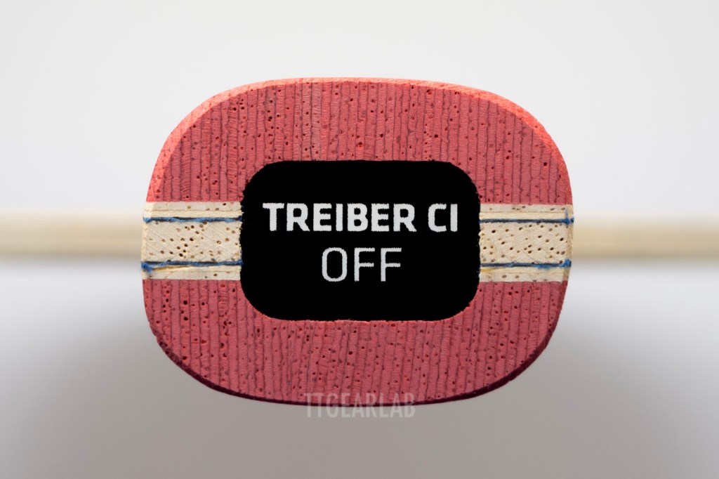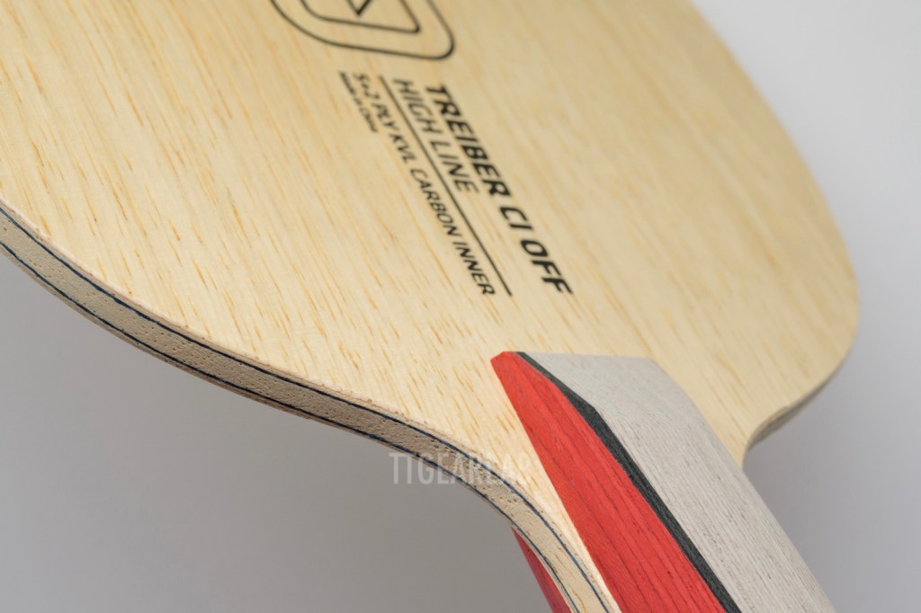 ‘Treiber CI OFF’ (hereinafter the speed symbol ‘OFF’ will be omitted and it will be just called as ‘Treiber CI’) is an inner fiber blade whose artificial material is KVL carbon (= Kevlar carbon). It has the characteristic of keeping ball stably in soft shots and exhibiting higher repulsion force when the ball is hit strongly. It is suitable for modern all-round play that mixes various kinds of table tennis technics.