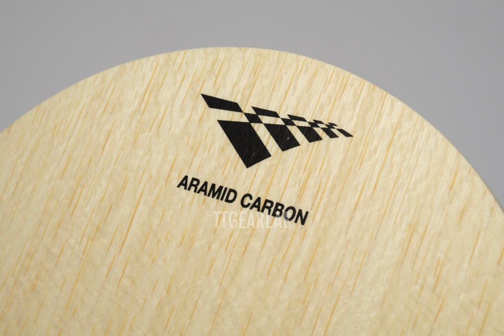 ‘Hayabusa ARX’ is an outer fiber blade. Aramid Carbon (= ARX) is placed directly under the top layer. The top layer is Koto. The middle layer is Ayous, and the center layer is Kiri. Overall thickness is around 5.8mm.