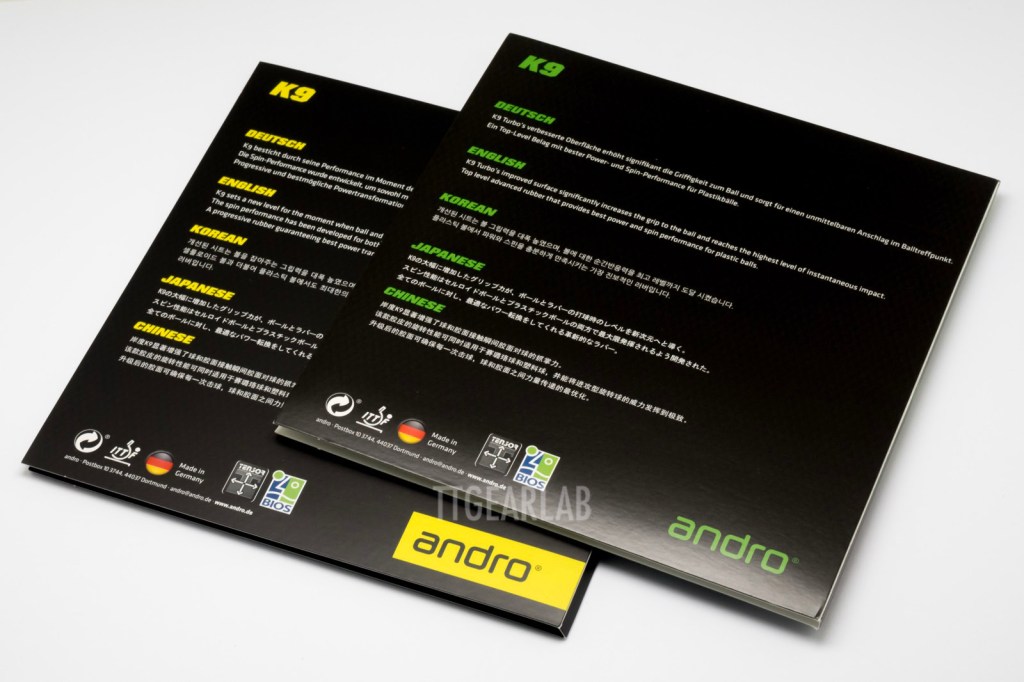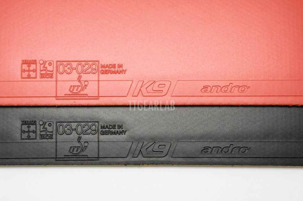 andro ‘K9’ and ‘K9 Turbo’ are special models developed for Korean players, at the request of TTATOZ.com which is andro’s Korean distributor. To satisfy the preference of Korean skilled players, ‘K9’ adapts special top sheet which is stiffer than the other andro rubbers. As the result ‘K9’ provides hard feeling like the feeling of glued ‘Sriver’ with hard sponge that had been preferred by Korean skilled players. ‘K9 Turbo’ is the combination of the top sheet of ‘K9’ and the green sponge of ‘Rasant’ series. As the result ‘K9 Turbo’ provides better click feeling than original ‘K9’. ‘K9’ is recommended for the players who prefer exciting hitting feeling, and ‘K9 Turbo’ is recommended for the players who want better balance between power and versatility.