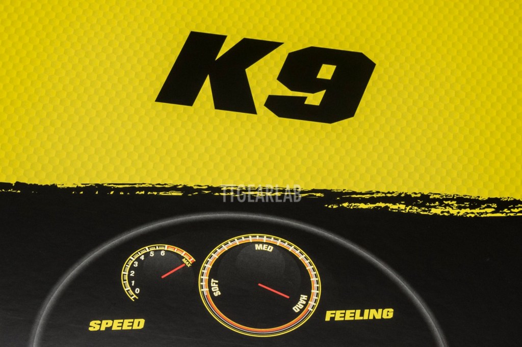 ‘K9 Turbo’ is the variation of ‘K9’. It is based on ‘K9’, and all numbers in specification are identical to those of original ‘K9’. The difference is in sponge. ‘K9 Turbo’ adapts green sponge which provides better click feeling than the yellow sponge of original ‘K9’. Professional players will prefer ‘K9 Turbo’ to ‘K9’ although the uniqueness of ‘K9’ has been a bit diluted.