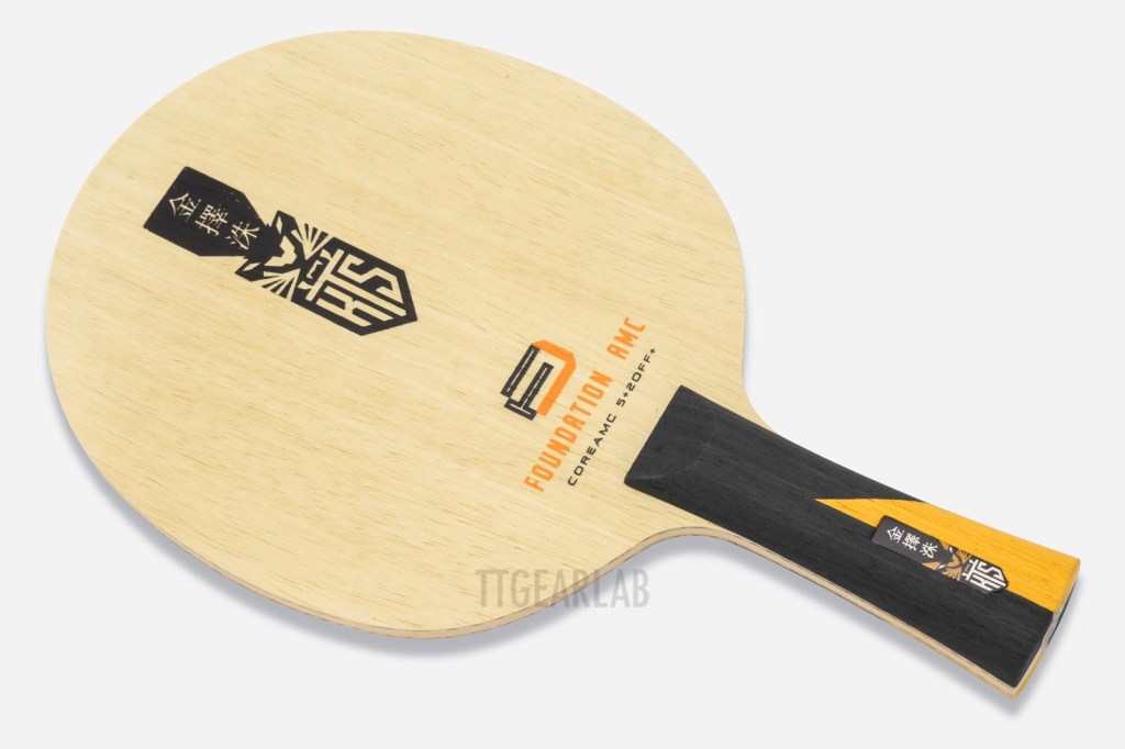 ‘Foundation AMC’ is a speed-oriented outer-type blade which lays emphasis on the destructive power of the ball. It is somewhat stiffer than ordinary thin 5+2 ply outer-type blades, but it hugs the ball very deeply when the player hits the ball very strongly. Therefore, the topspin like ‘catch and throw’ from mid-distance area is very easy and powerful. Further, the smash at close-to-table area is also very destructive thanks to its very high elasticity. The overall characteristics of ‘Foundation AMC’ remind us those of Super ZLC blades of Butterfly or Carbonado 290/245 of Stiga. TTGearLab will further analyze ‘Foundation AMC’ and the other models in ‘Foundation’ series and compare those ones with the blades from other companies in near future.