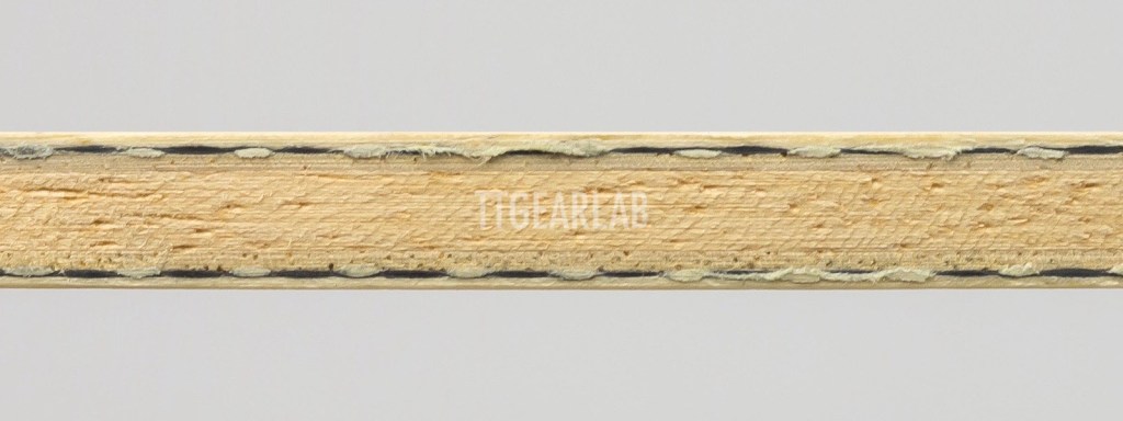 ‘Foundation AMC’ is an outer-type fiber blade of 5+2 ply construction. The top layer is Limba, the middle layer is Ayous, and the center layer is Kiri. High-density Aramid Carbon is inserted directly under the top layer. Overall thickness is around 5.6mm. Except for the color of the fiber, this construction look very similar to that of ‘Problade Fury LC’ which is another model in KTS blade range. But, the actual playing characteristics of ‘Foundation AMC’ is much different from that of ‘Problade Fury LC’.