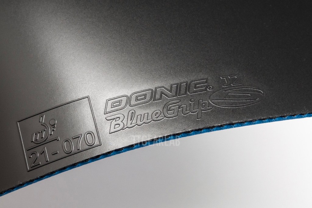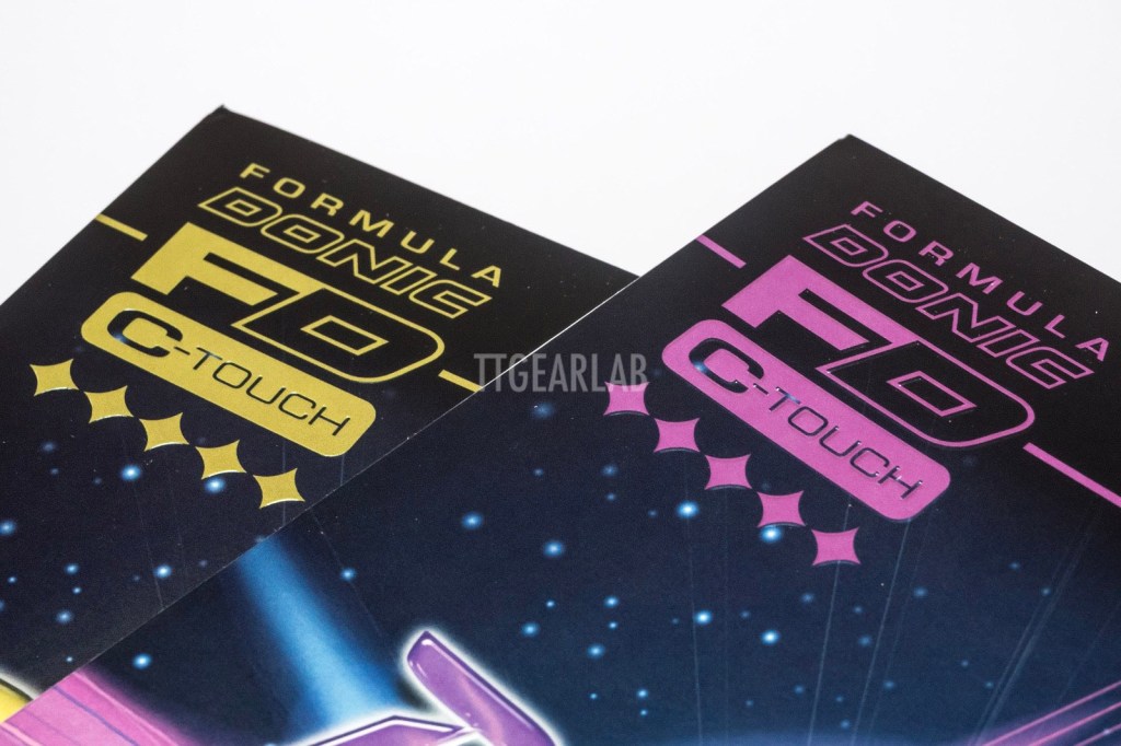 Two rubber technologies – ‘FD (= Formula Donic)’ and ‘C-Touch’ are indicated at the left top of the foreside of packaging. ‘Formula Donic (= FD)’ means that tension effect (= speed glue effect) is integrated in the rubber. The technology name ‘FD’ had been introduced in 1998 with the release of ‘Desto F1’ which is the first tension rubber of Donic. ‘C-Touch’ means that the characteristics of this rubber are close to those of Chinese sticky rubbers, when compared with former sticky rubbers made in Germany. In Donic rubber range, ‘C-Touch’ is applied to two rubber families – ‘BlueGrip C’ and ‘BlueGrip J’. (It seems that ‘C’ is the initial of ‘Chinese’.)