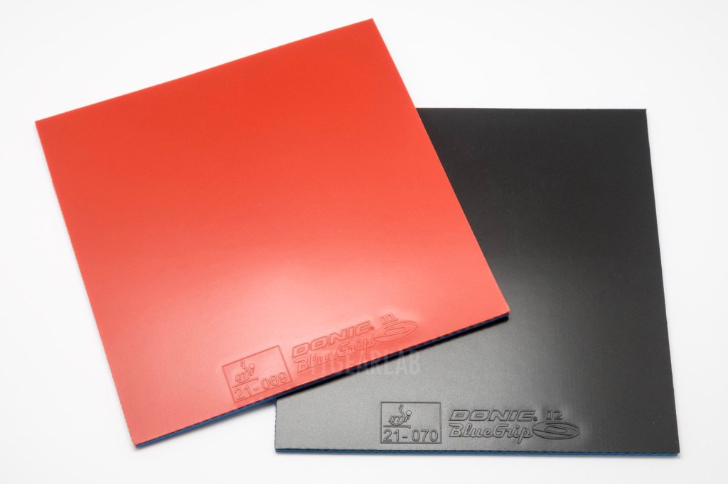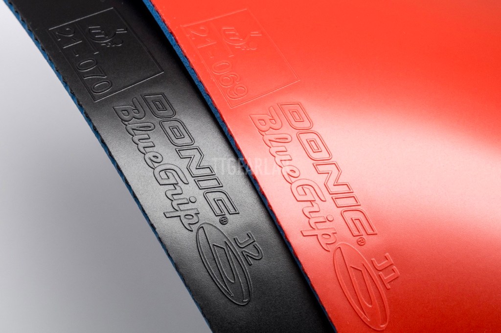 Above picture shows the red top sheet of ‘BlueGrip J1’ and the black top sheet of ‘BlueGrip J2’. ITTF registration numbers are 21-069 and 21-070 respectively.