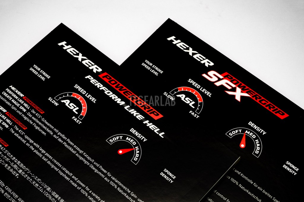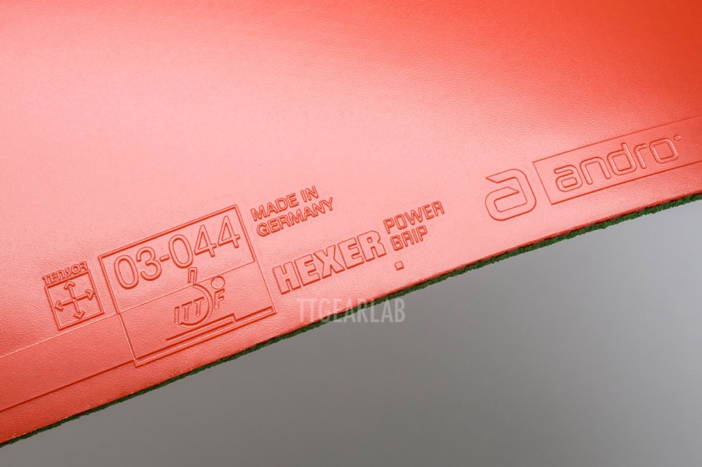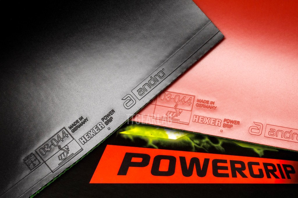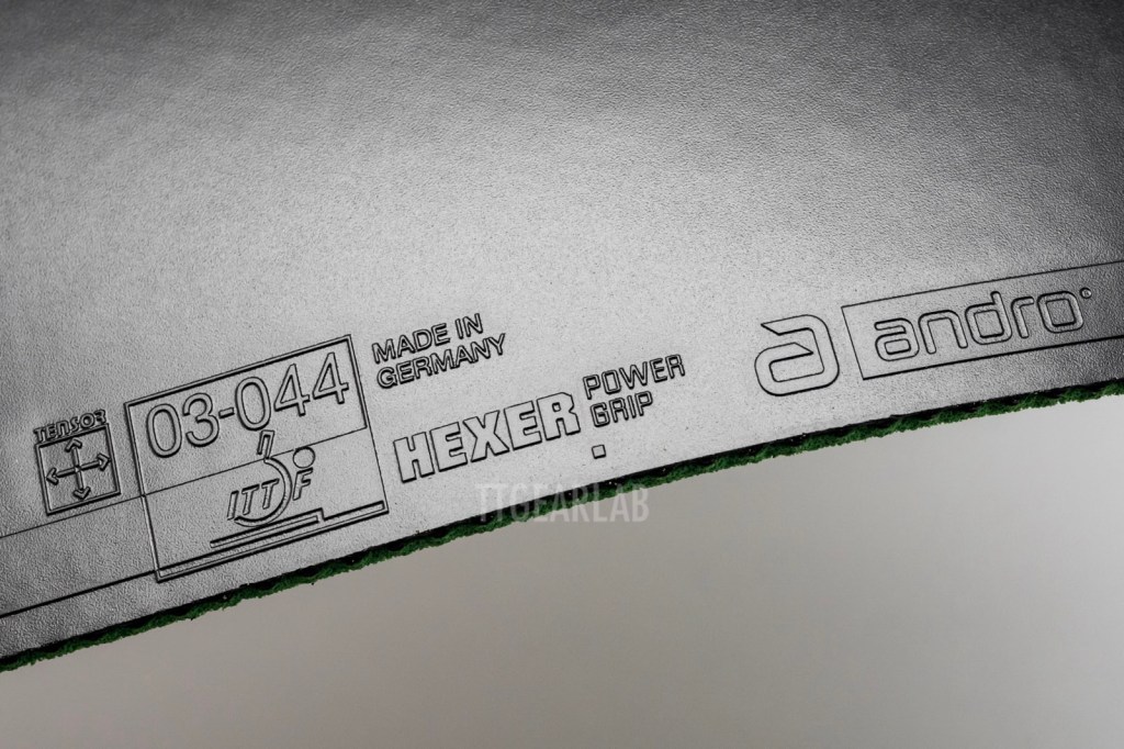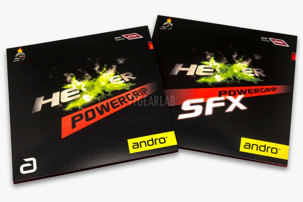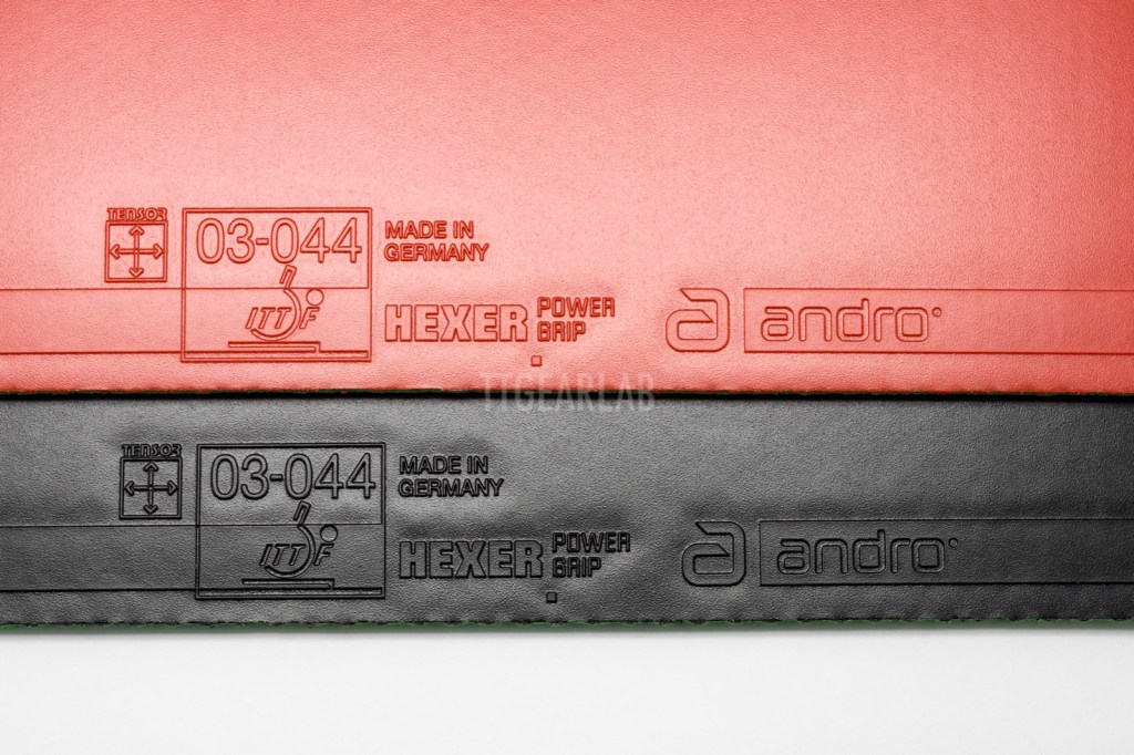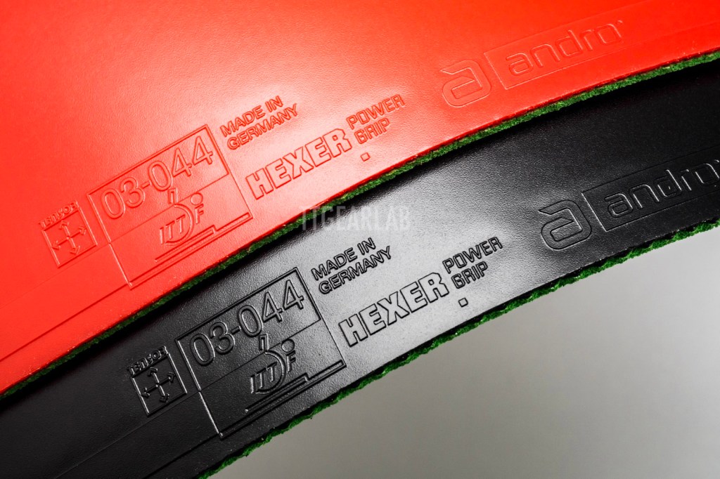 andro ‘Hexer PowerGrip’ series consists of two variations – ‘Hexer PowerGrip’ which is a medium hard version with sponge density of 47.5°, and ‘Hexer PowerGrip SFX’ which is a medium soft version with sponge density of 42.5°. Two variations have identical top sheet (except for the ‘SFX’ and ITTF registration numbers at logo area), and are distinguished only by sponge density. andro is recommending ‘Hexer PowerGrip’ which is 47.5° version for intermediate players or above, and ‘Hexer PowerGrip SFX’ which is a 42.5° version for entry players.