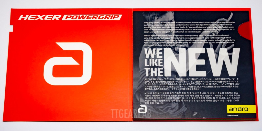 ‘Hexer PowerGrip’ is the rubber aimed at intermediate or advanced amateur players rather than professional players, and it is much easier to use than sticky rubbers while providing high-level of stability in the rally by topspin thanks to high grip and strong rotation. That great balance in performance and reasonable price has led ‘Hexer PowerGrip’ to the success in the market. We may be able to think that the representative rubber of andro isn’t ‘Rasanter’ or ‘NUZN’ but ‘Hexer PowerGrip’. (As the representative rubber of Butterfly until 2008 wasn’t ‘Bryce’ but ‘Sriver’.) ‘Hexer PowerGrip’ is highly recommended for the players looking for the reasonably priced rubber which provides high performance and ease of use at the same time.