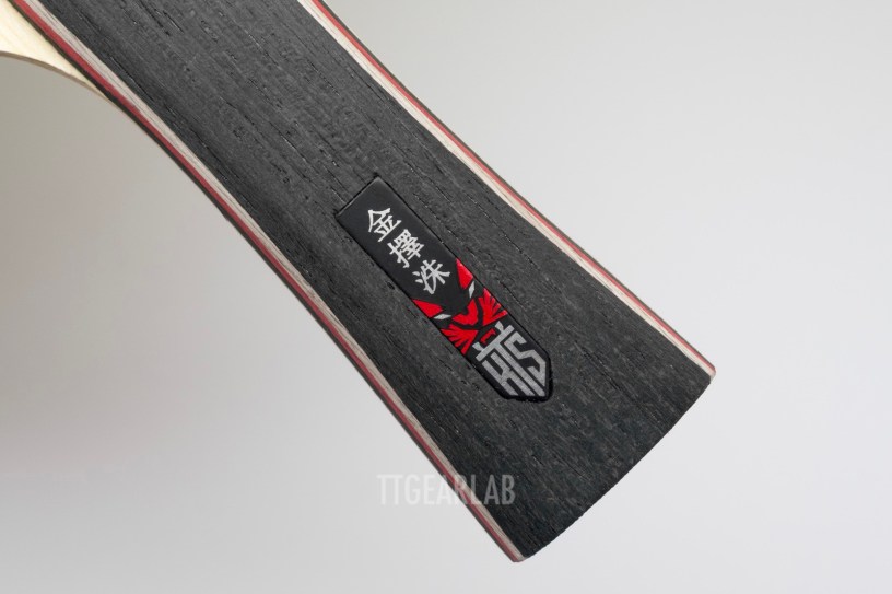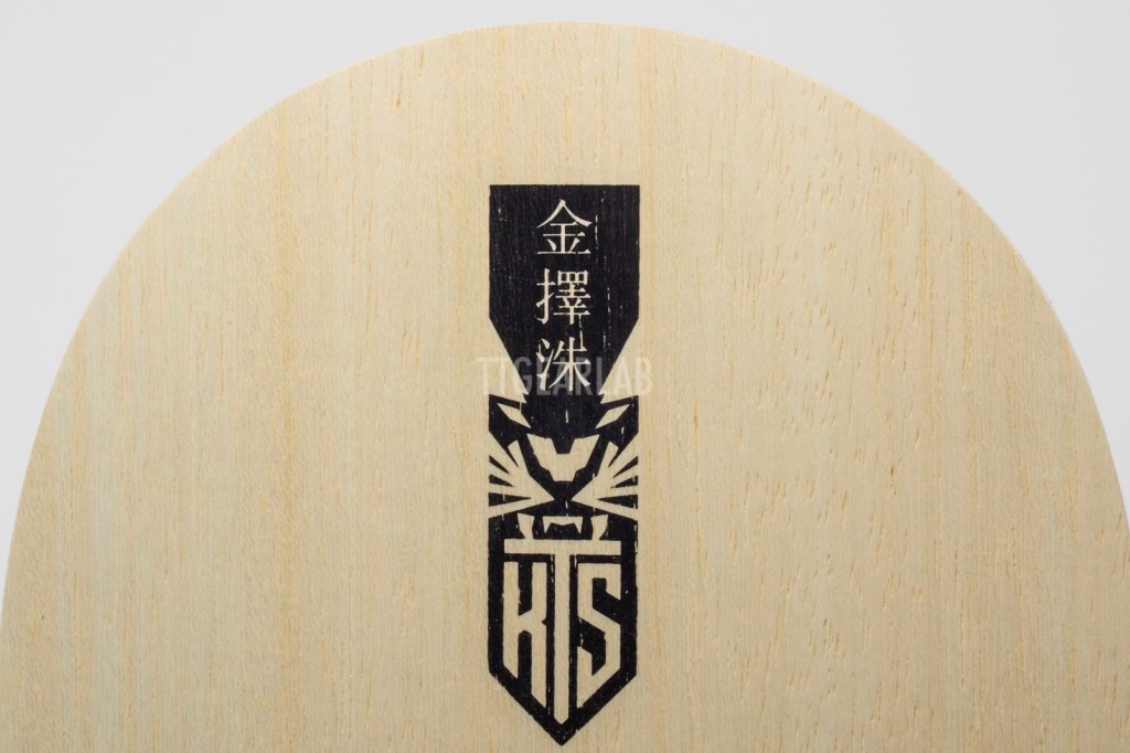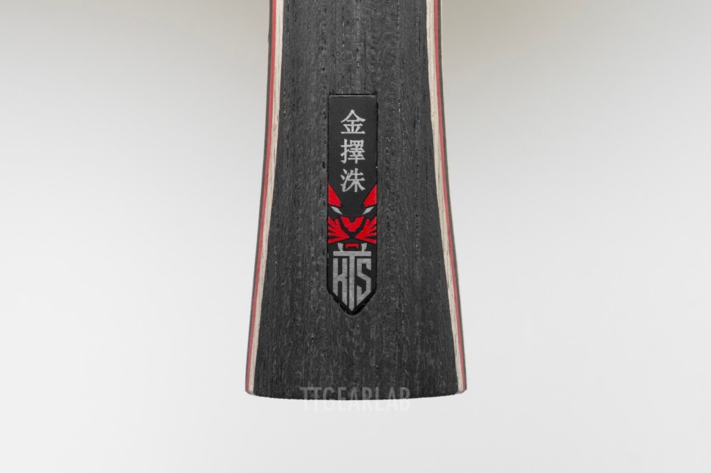 The Tiger Face ‘金擇洙(Kim Taeksoo)’ logo which is also applied to the top blade family – ‘Problade’ series – is printed on the top of the foreside of blade head. And, on the bottom of blade head, the logo of ‘Foundation’ series, the name of blade model, the name of artificial fiber, the construction and speed sign (= OFF+) are printed. In the standard of KTS, the speed sign ‘OFF’ means that the blades is for offensive play by topspin, and the speed sign ‘OFF+’ means that the blade lays emphasis on speed.