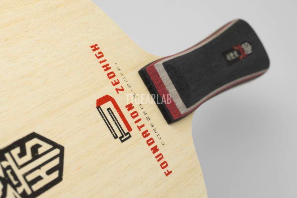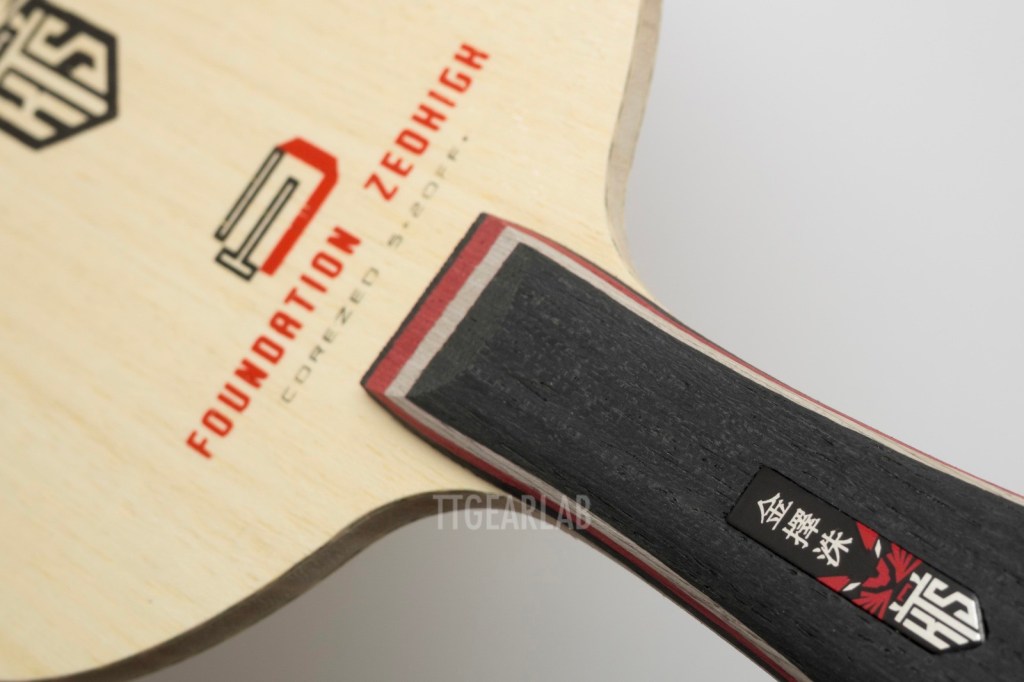 ‘Foundation ZED High’ is an outer-type fiber blade of 5+2 ply construction. The top layer is Koto, the middle layer is Ayous, and the center layer is Kiri. Core ZED is inserted directly under the top layer. Overall thickness is 5.8~5.9mm. Core ZED is a type of ZLC, and its weaving method is the same as that of Super ZLC of Butterfly but the width of bundle looks a bit different from that of Super ZLC. (In fact, ZED High means Super ZLC.) So Overal characteristics of Core ZED is in between Super ZLC and ZLC. It doesn’t become extremely stiff like ZLC when the player hits the ball very strongly in large angles, and it doesn’t hug the ball as extremely as Super ZLC. And, the differences among fibers directly become the differences when we compare ‘Foundation ZED High’ with Butterfly ‘Fan Zhendong ZLC’ and ‘Fan Zhendong Super ZLC’. It seems that KTS has tried to find out the optimum point of the characteristics of outer ZLC/SZLC blade.